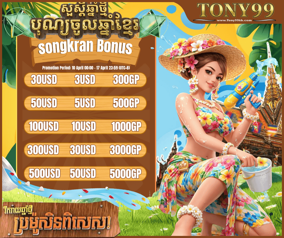 Welcome to Tony99kh Gaming Website 🇰🇭 Special Bonus Offer •10% Bonus on Every Deposit •20% Bonus Daily (Once/Day) •10% Weekly Cashback •Level Up Get Bonus សូមស្វាគមន៍មកកាន់ វេបសាយហ្គេមកម្សាន្ត Tony99kh 🇰🇭 ប្រាក់រង្វាន់ផ្តល់ជូនពិសេស •ថែម 10% រាល់ការដាក់ប្រាក់ •ថែម 20% ប្រចាំថ្ងៃ ( ម្តង/ថ្ងៃរ) •ប្រាក់បង្វិលសង 10% ប្រចាំសប្ហាហ៍ •តម្តើងកម្រិត យកប្រាក់រង្វាន់ 欢迎来到 Tony99kh 游戏网站。 特别奖励优惠 •每笔存款增加 10% •每日增加 20%(每天一次) •每周 10% 现金返还 • 升级并获得奖励